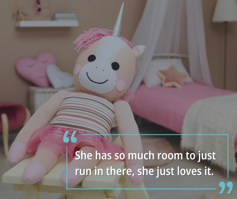 They closed on their new home at the end of September and moved in that same weekend. The updated house has been everything they hoped for—especially for their daughter, who is thrilled with her larger bedroom. “She has so much room to just run in there, she just loves it.” She’s already busy planning her pink-and-unicorn décor. The family has also enjoyed having a more spacious living room, creating a cozy space that works for both adults and kids.